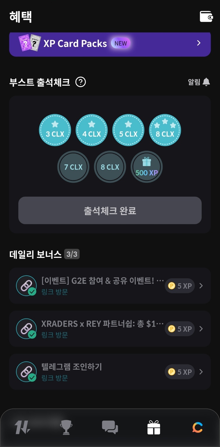 120 clx를 모으면 xp 스페셜 카드팩을 오픈 할 수 있습니다.