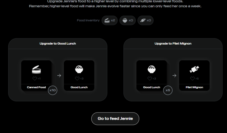 저 칸을 누르시면 제니에게 음식을 줄 수 있습니다.