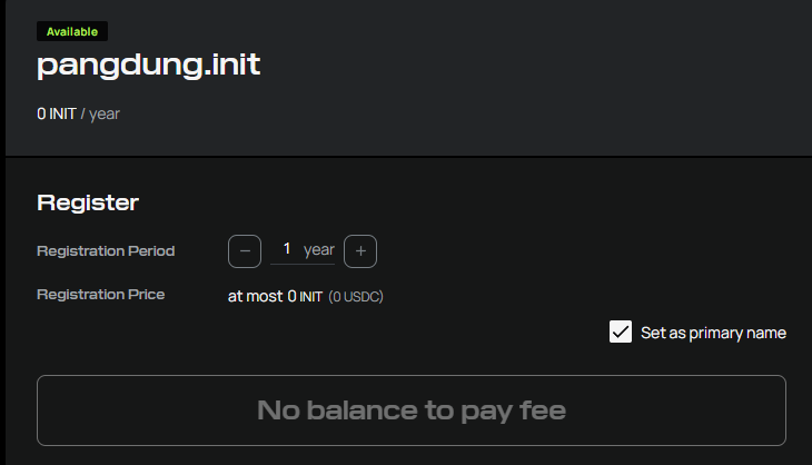 No balance to pay fee 칸이 Register 로