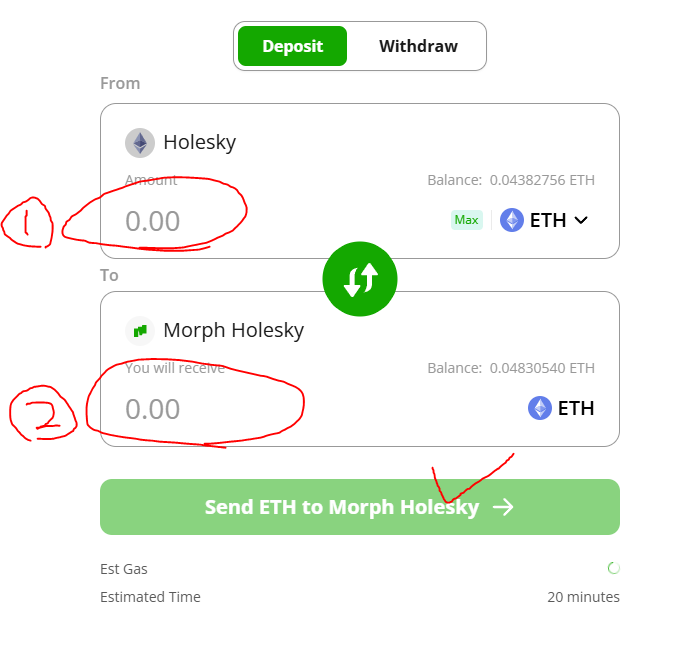 Stake 하는데 모프홀스키체인 이더가 필요합니다.