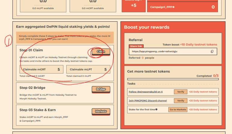 진행하시면 하루에 얻을 수 있는 테스트넷 토큰이