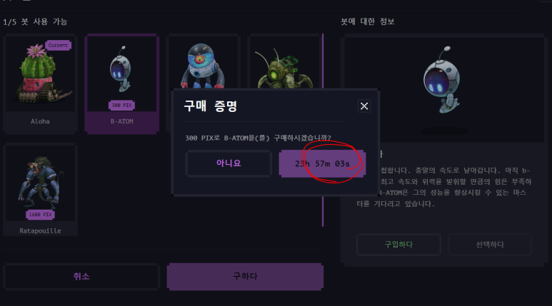 여기서 펫 구매는 1일 1번만 가능하니