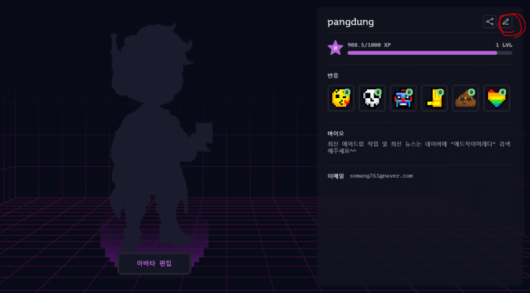 프로필 수정란이 있습니다.