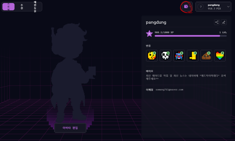 Pixel Tap 대쉬보드 입니다.
