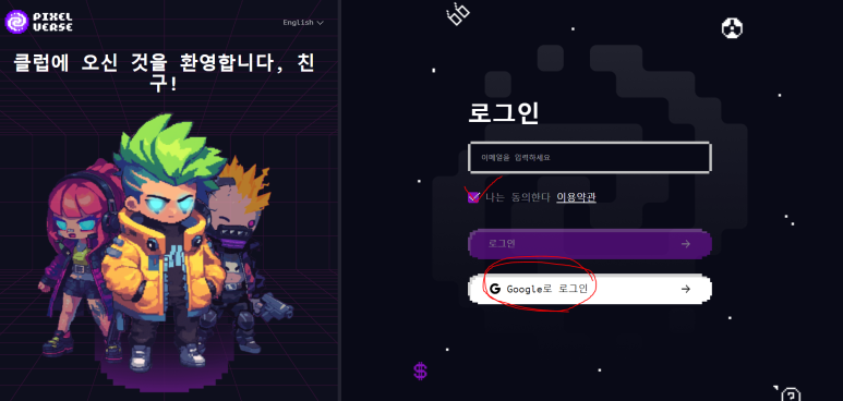 동의한다에 체크 후 구글 로그인을 해주세요