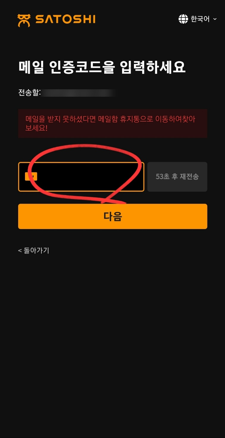 인증코드를 적어주시고 인증해주세요